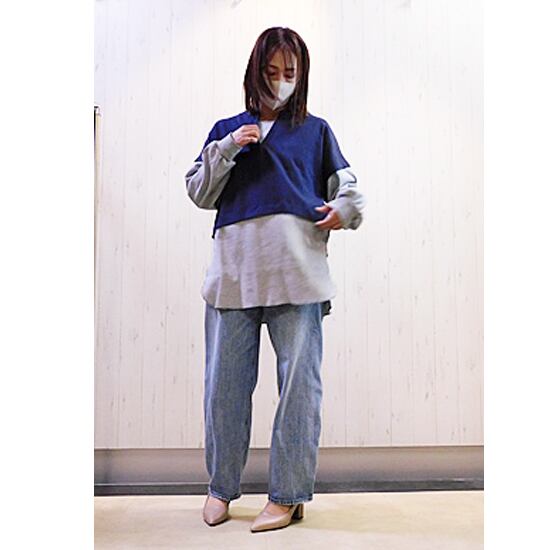 綿のトレーナーと布帛生地がMIXされた重ね着風のチュニック