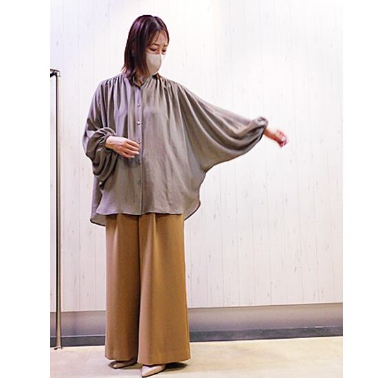 シャラシャラっと落ち感のある袖先シャーリングデザインのブラウス
