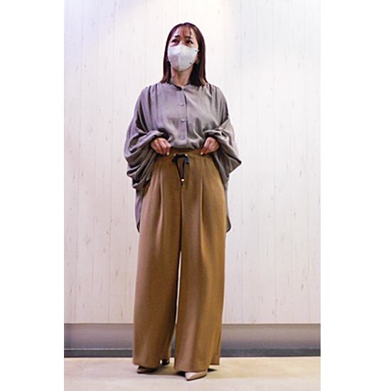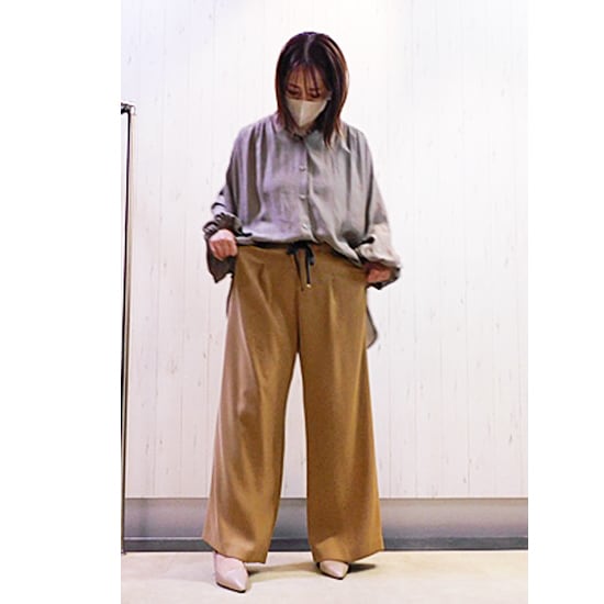 シャラシャラ生地のシワになりにくい生地のワイドパンツ