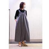 サラサラ生地のシワになりにくい生地、大人キレイなジャンパースカート
