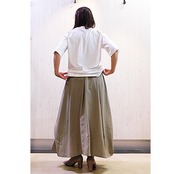 シャラっと落ち感のある生地、アシンメトリーデザインのスカート