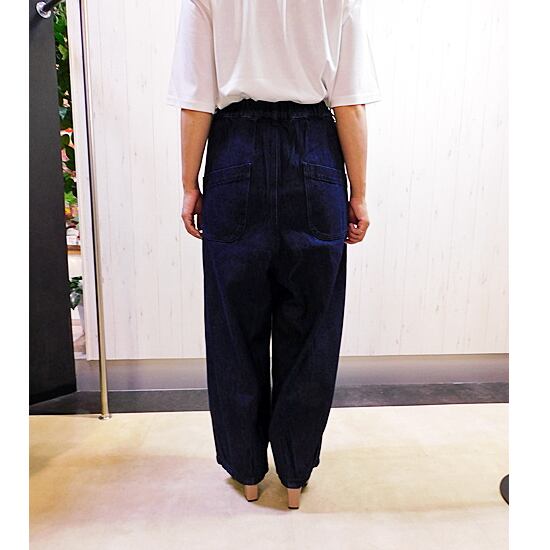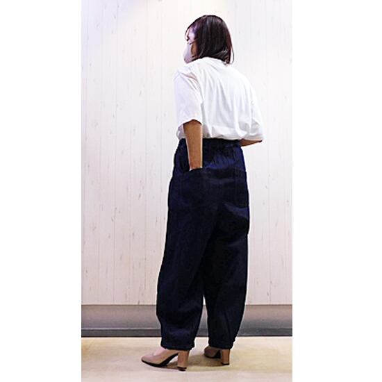 しっかりとした生地のゆったり着用できるコクーンデニムパンツ