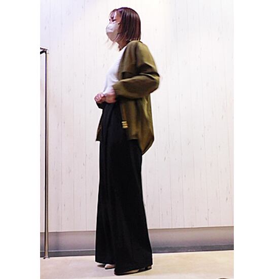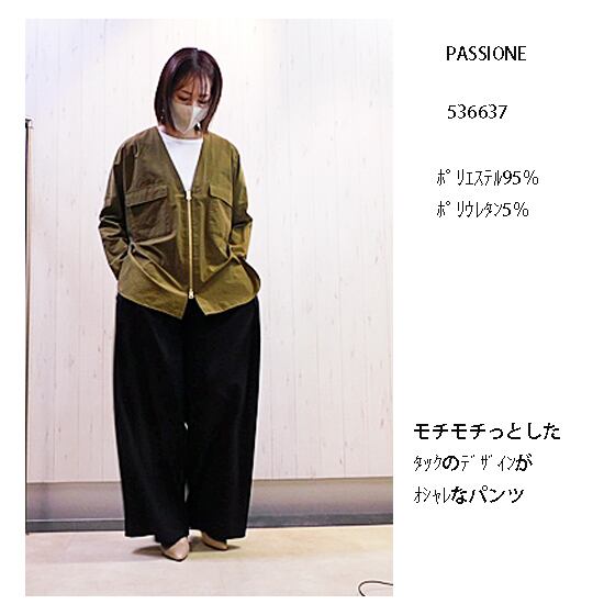 モチモチっとした素材のタックデザインがオシャレなワイドパンツ