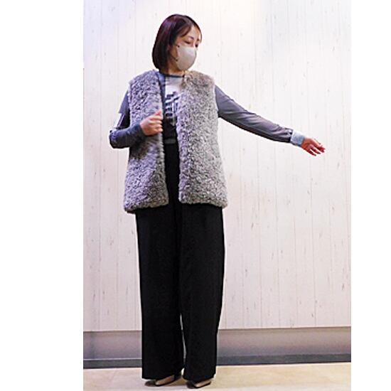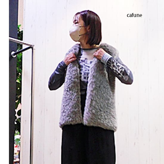 ふわふわと柔らかいシャギーボアの着流しベスト