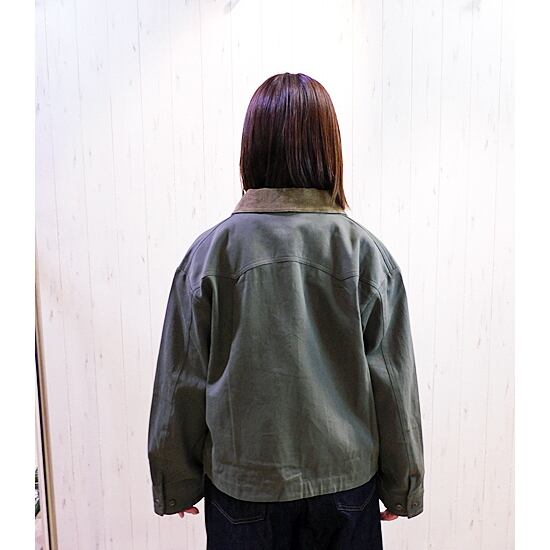 ハリのある綿素材の襟がコールテン素材のスッキリジャケット