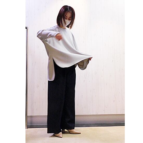 サラサラのゆったりシルエット、後ろデザインファスナーのプルオーバー