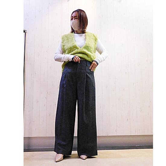 さらっとしていて温かいツイード生地のタックワイドパンツ