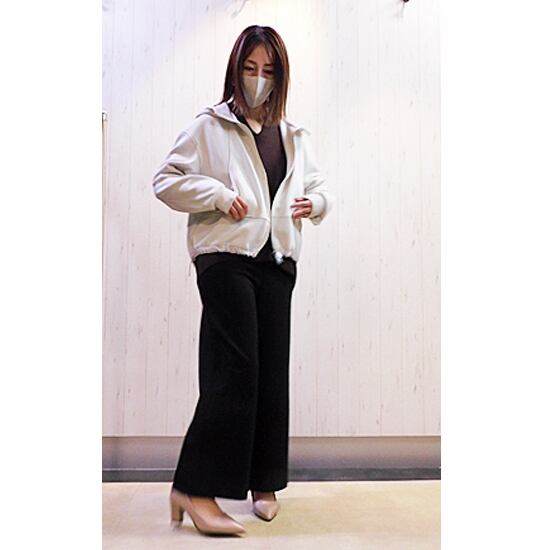 内側起毛のボンバーヒート生地のスッキリ、パーカージャケット