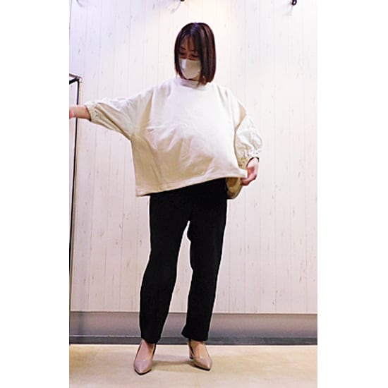 前後が裏毛の綿素材、袖が布帛生地の綿、プルオーバー