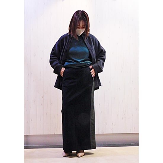 ストレッチが効いた起毛素材のサイド切り替えのスカート