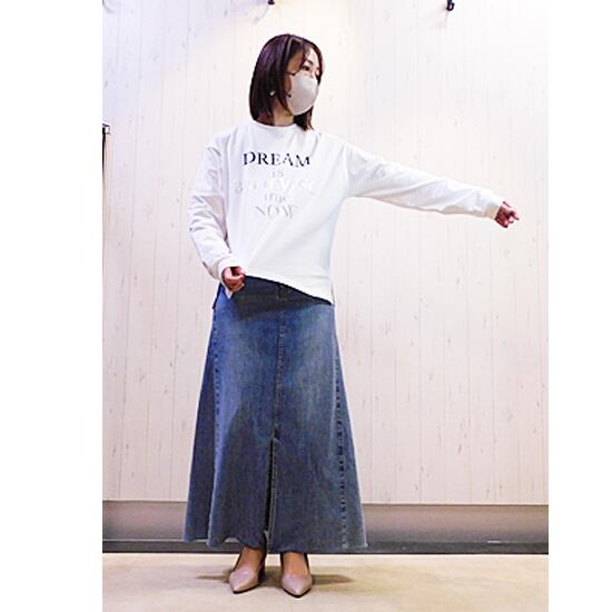 つるっとしたキレイ目な綿素材、箔プリントMIXのロゴTシャツ