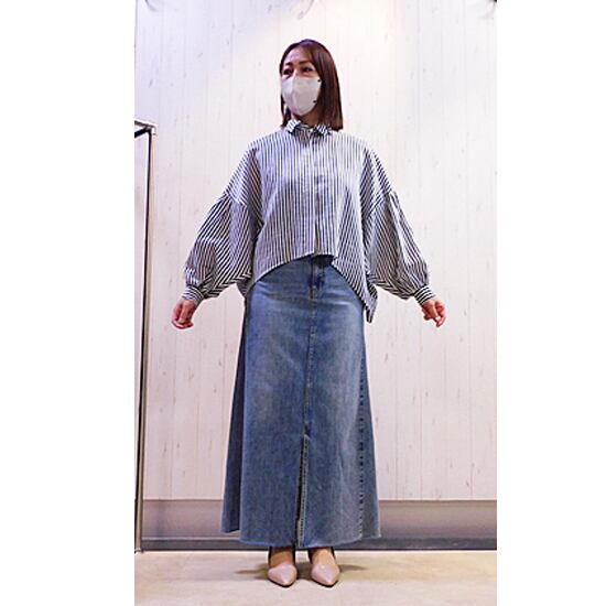 サラサラっとしたセルロース生地のストライプ柄ブラウス