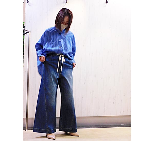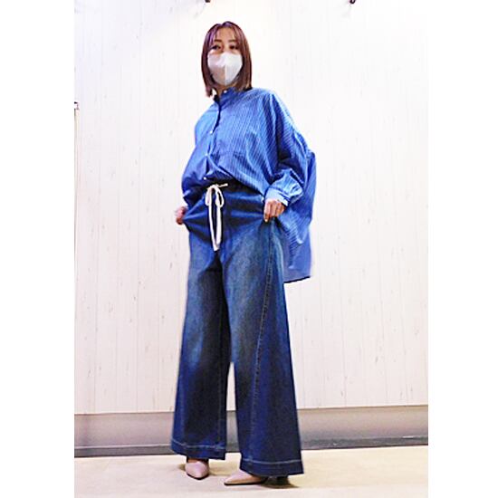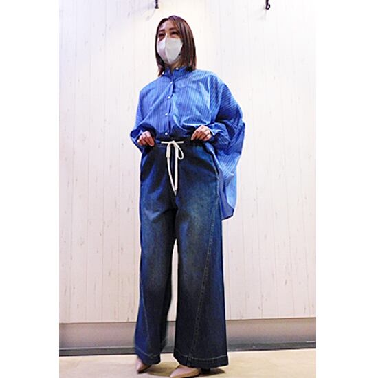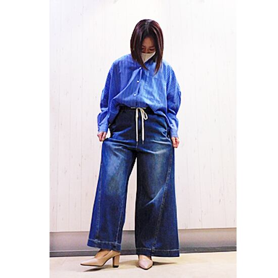 ゆったりとしたシルエットのBOX型デニムパンツ
