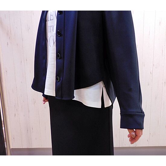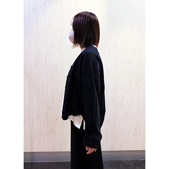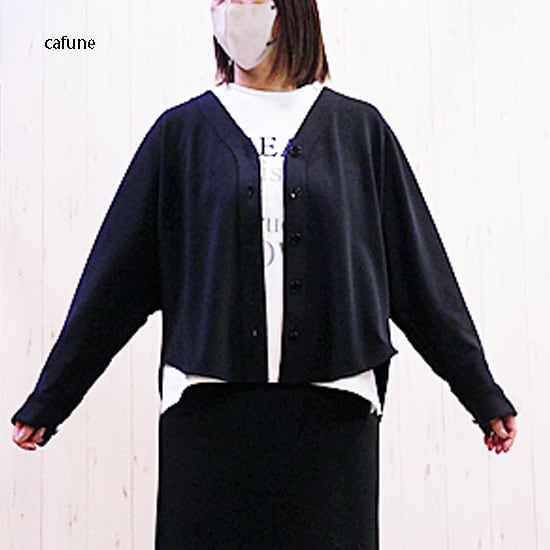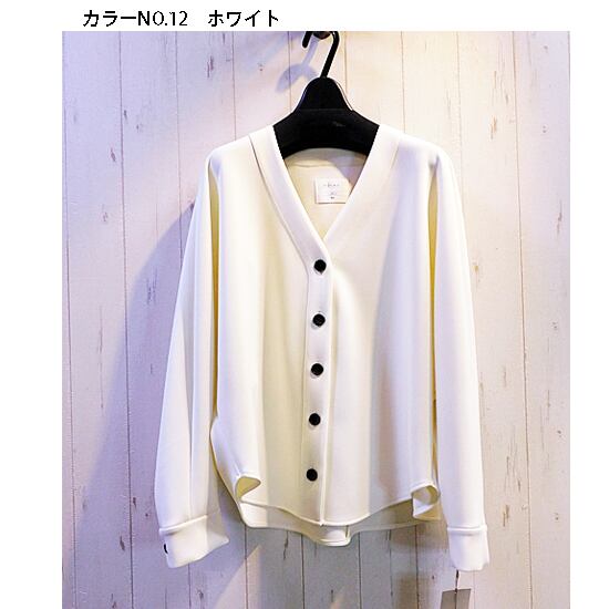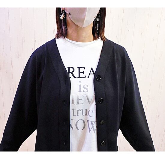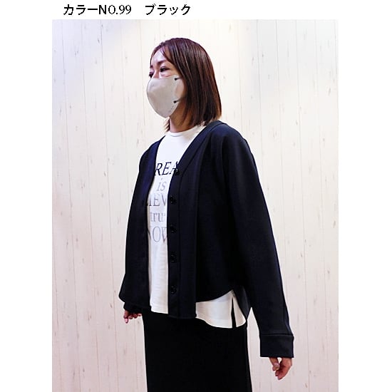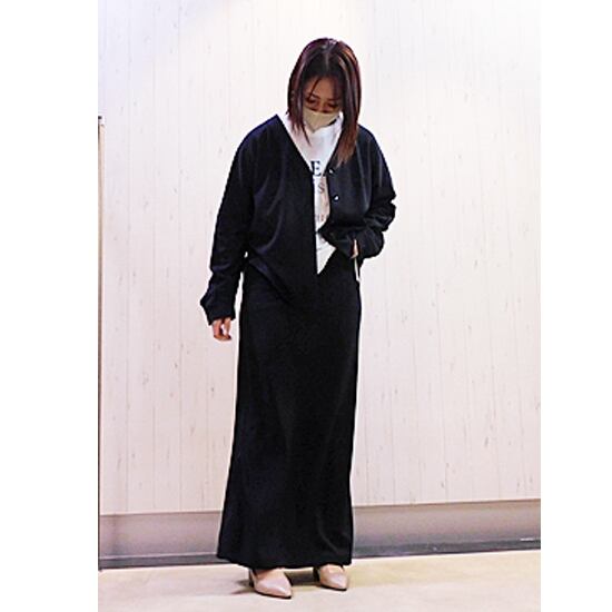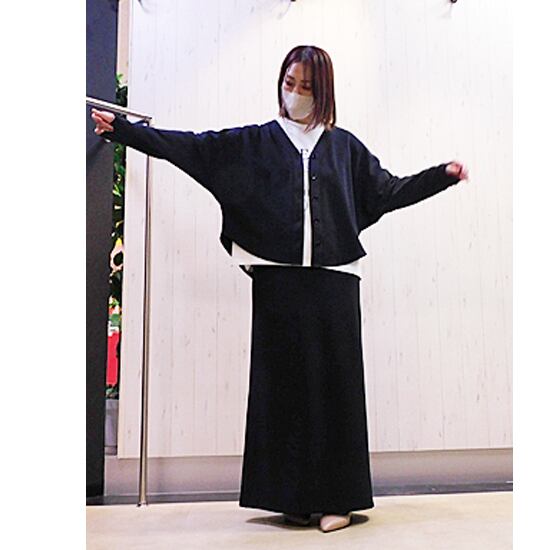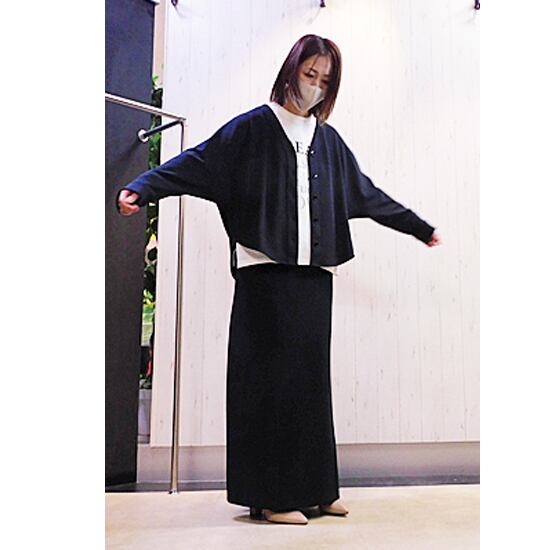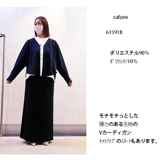 モチモチっとした素材のスッキリV首カーディガン、セットアップが可能なアイテムです。