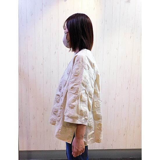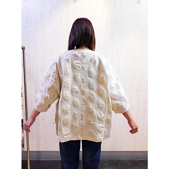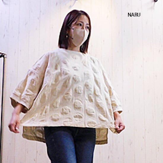 しっかりとハリがある綿素材ドット柄がカワイイブラウスです。