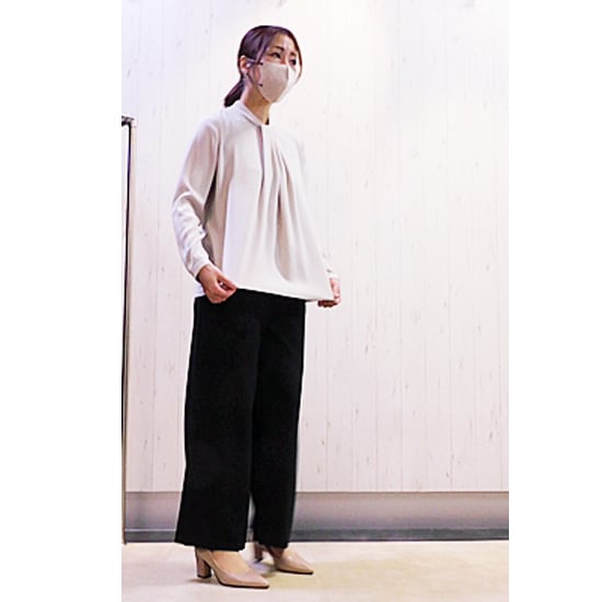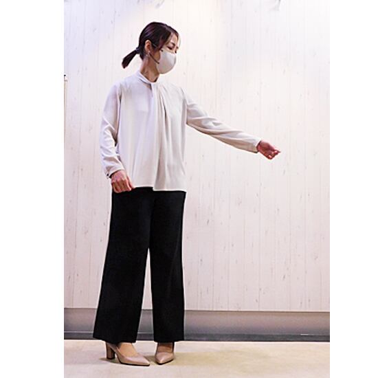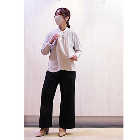 サラサラのシワになりにくい生地のボウタイ風ブラウス
