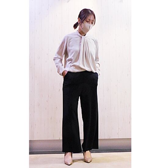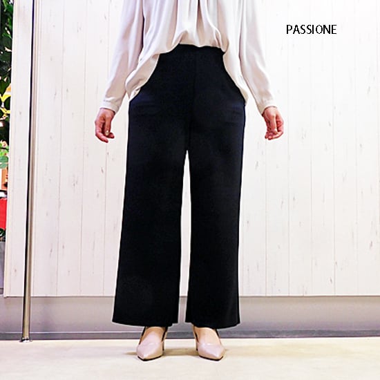 しっとり柔らかくモチモチっとした素材のワイドパンツ