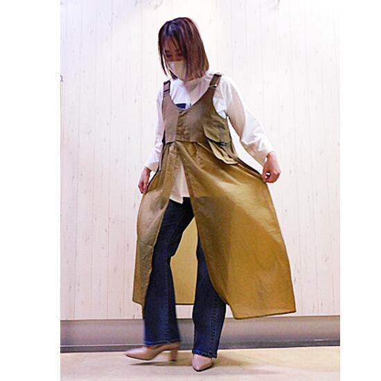 シアー感のある生地がMIXされた重ね着オーバーワンピース