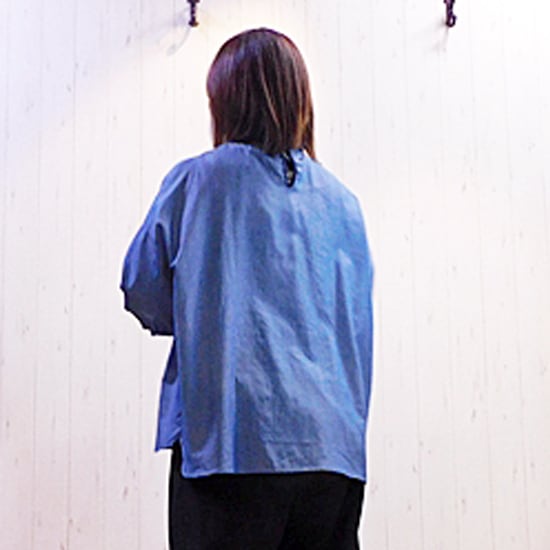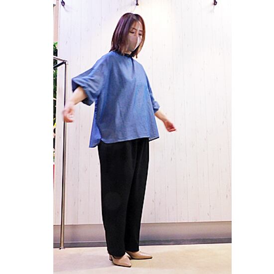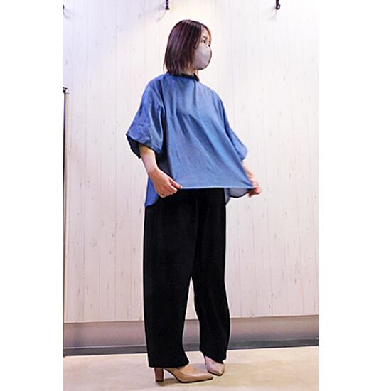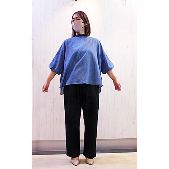 柔らかい綿素材の大人っぽい首元フリルのブラウスです。