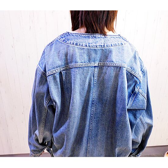 スッキリキレイ目なノーカラーデニムジャケット