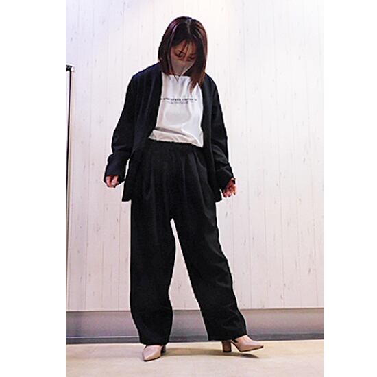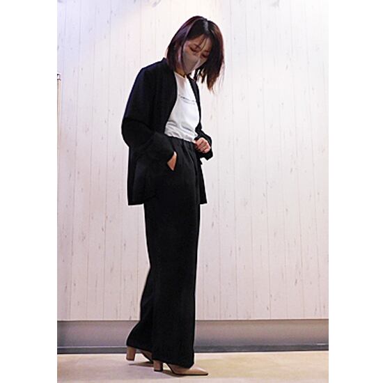 ストレッチが効いた生地のゆるっとワイドパンツ、ジャケットとセットアップが可能