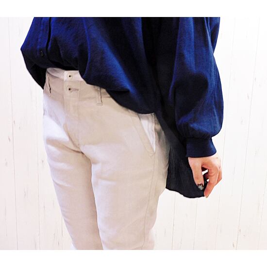 麻で清涼感たっぷりのストレッチ素材のテーパードパンツ