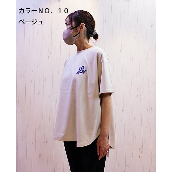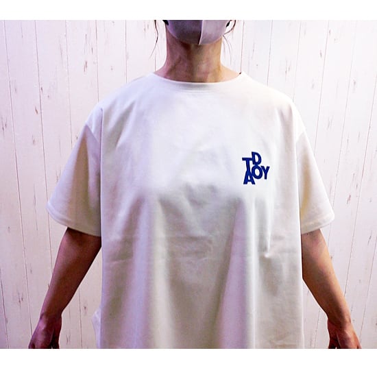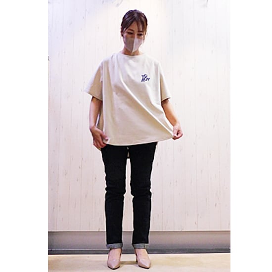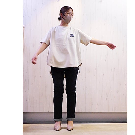 サラサラのキレイ目綿素材の後ろテープデザインのロゴTシャツ