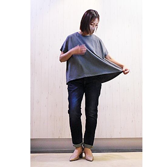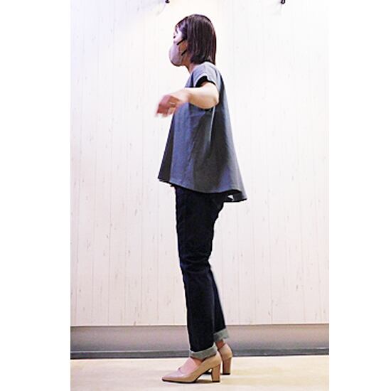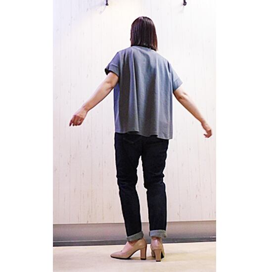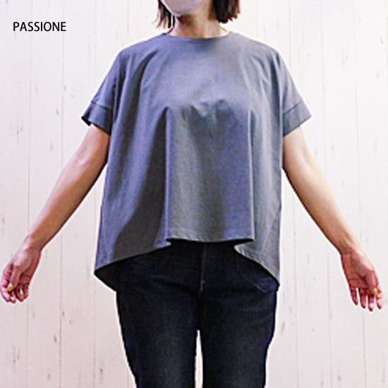 サラサラの綿素材後ろ身頃フレアーデザインのキレイ目プルオーバー