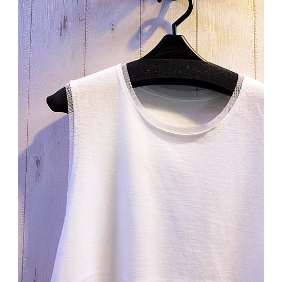 柔らかい綿素地亜の首繰りチュールデザインタンクトップ