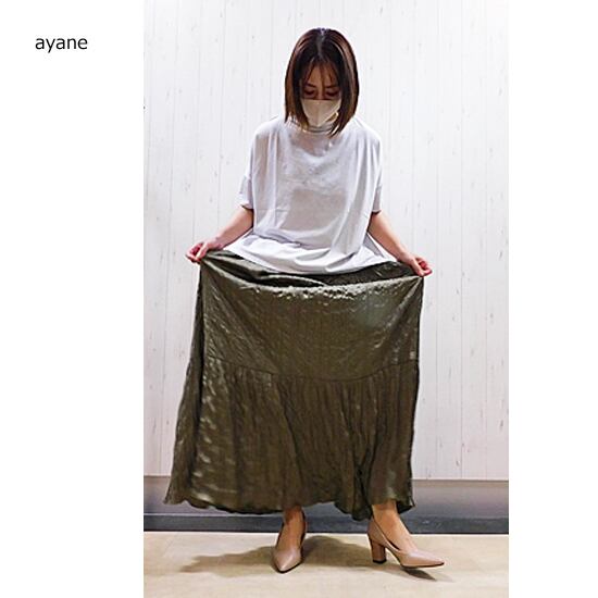 少し光沢感のある切り替えがカワイイ、プリーツスカート