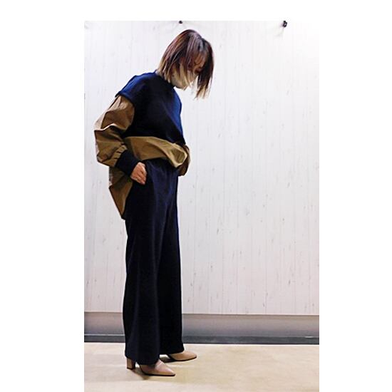 ふわっと柔らかいニット素材のワイドパンツ